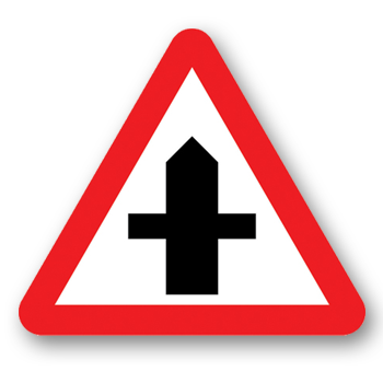 The priority through the junction is shown by the broader line. You need to be aware of the hazard posed by traffic crossing or pulling out onto a major road.