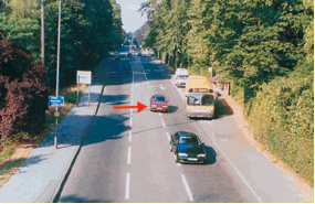 If you can do so safely, give way to buses signalling to move off at bus stops. Try to anticipate the actions of other road users around you. The driver of the red car should be prepared for the bus pulling out. As you approach a bus stop, look to see how many passengers are waiting to board. If the last one has just got on, the bus is likely to move off.
