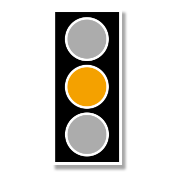 At junctions controlled by traffic lights, you must stop behind the white line until the lights change to green. A red light, an amber light, and red and amber lights showing together all mean stop. You may proceed when the light is green unless your exit road is blocked or pedestrians are crossing in front of you. If you're approaching traffic lights that are visible from a distance and the light has been green for some time, be ready to slow down and stop, because the lights are likely to change.