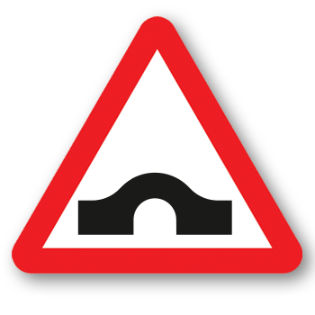 You'll need to slow down. At hump bridges, your view ahead will be restricted and the road will often be narrow. If the bridge is very steep, sound your horn to warn others of your approach. Going over the bridge too fast is highly dangerous to other road users and could even cause your wheels to leave the road, with a resulting loss of control.
